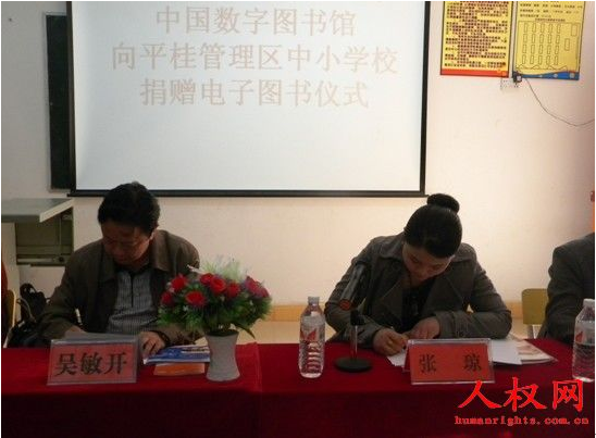 2011年11月25日上午,中国数字图书馆向平桂管理区中小学捐赠电子图书仪式在管理区实验小学举行。