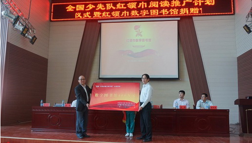 2013年9月12日,红领巾数字图书馆公益捐赠仪式暨全国少先队红领巾阅读推广活动在银川市实验小学隆重举行。中国数字图书馆副总裁林青、中国数字图书馆事业部马俊、李金鹏,宁夏自治区团委领导李彦炜、孙艳芳、银川市团委副书记张涛以及红领巾数字图书馆师示范学校的老师出席了捐赠仪式。