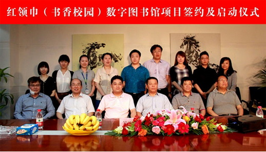 为进一步响应胡锦涛总书记对全国少先队员提出的要争当“四好少年”的号召,为向全国少先队员奉献一份节日大礼,今年六一儿童节,由中国数字图书馆和中国少先队事业发展中心共同发起的“红领巾(书香校园)数字图书馆”公益项目正式启动。中国少先队事业发展中心副主任许华平、中国数字图书馆董事长姚霆、中国数字图书馆副总裁林青等领导参加了项目签约及启动仪式。