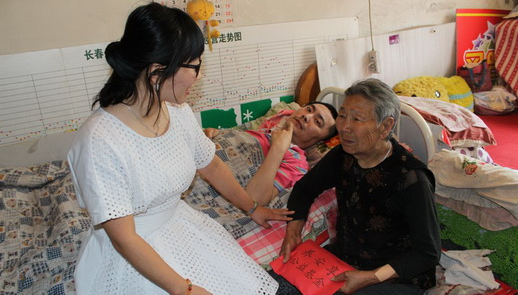 照顾一个瘫痪的病人并不容易,穿衣、喂饭、喂药、洗脸、翻身,这些动作每天都要重复,这对于一位83岁的老人来说,困难可想而知。老人说,一次夜里为了给儿子翻身,由于自己用力较大,儿子翻滚到床边,马上要摔到地上,她立即用身体挡住儿子,自己却重重地撞在了铁床上。