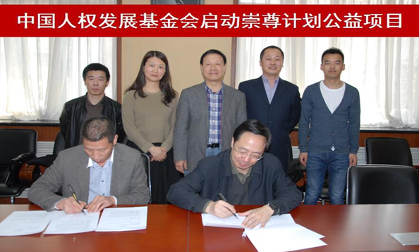 2016年3月11日,中国人权发展基金会崇尊计划公益项目(以下简称“崇尊计划”)启动签约仪式在京举行。我会主持工作的副秘书长王建林、中华职教社副总干事杨农、北京崇尊文化传播有限公司法人许加明和总经理宫兴武等出席了签约仪式。