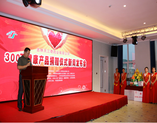 同日下午,中国人权发展基金会健康救助基金还在吉林省永吉县举行了“吉林天三奇药业有限公司300万健康产品捐赠仪式新闻发布会”。此次发布会是对健康救助基金启动于2017年1月以来开展的“永吉大型健康救助公益活动”的阶段性总结,同时进行300万健康救助产品的最后一个阶段的发放工作?;嵘希泄巳ǚ⒄够鸹岽硐蛱烊嫫笠荡戆浞⒘斯媸乱稻柙骋环⑵币约熬柙な?,并见证了健康救助产品此次救助活动的最后一批产品的发放情况。100名受助贫困群众的代表参加了会议,并当场领到了救助产品。据天三奇药业公司总裁李盛学透露,此次健康救助活动同时得到了吉林大学第三医院(中日联谊医院)的临床跟踪,效果喜人,将在适当时侯发布此次健康救助活动的最终汇报。