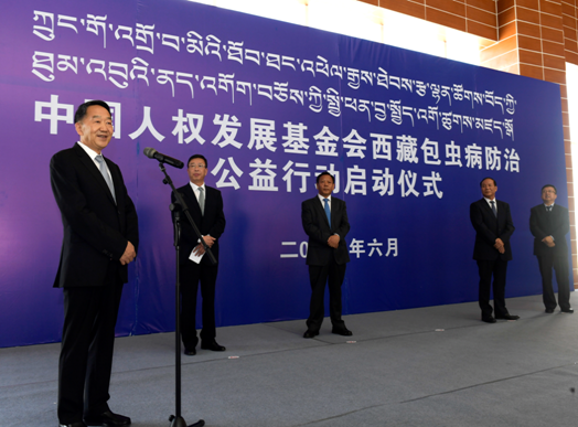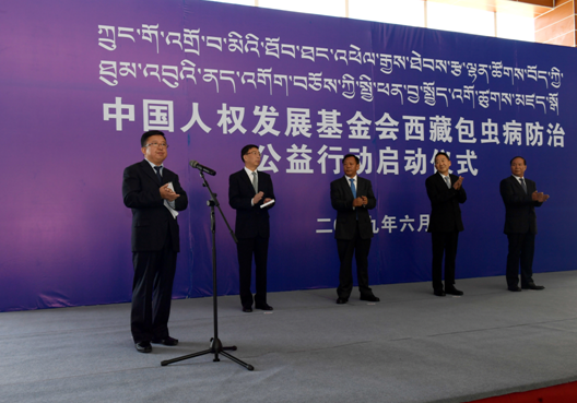 6月12日下午,中国人权发展基金会包虫病防治公益活动在拉萨启动。