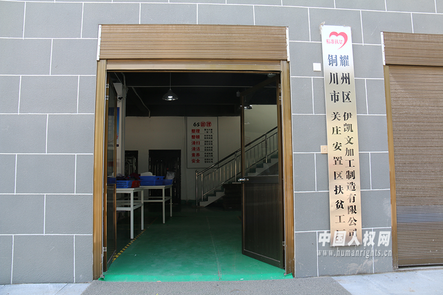 中国人权网讯 关庄社区扶贫工厂位于耀州区关庄镇集中安置区,该安置区规划占地110亩,总建筑面积6万平方米,5栋安置楼372套住房,已安置贫困户162户568人。为确保搬迁群众“搬得出、稳得住、能致富”,耀州区按照“就业一人、脱贫一户”的思路,积极探索“楼上居住、楼下就业”的新举措,在关庄镇集中安置区率先创办社区工厂,推广“八星励志”扶贫扶志模式,为贫困户免费提供培训,优先提供就业岗位,实现群众稳定就业、脱贫致富和企业盈利增收的“双重效应”,深度激发了贫困群众的内生动力。目前,该社区扶贫工厂已改建厂房3600平方米,提供就业岗位170余个,成为当地贫困群众增收致富的新支点。