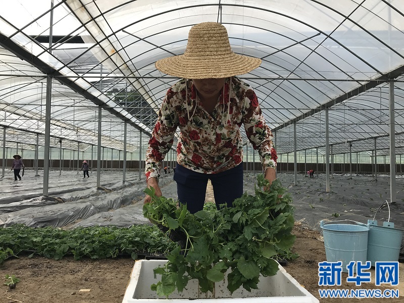 寻乌县留车镇飞龙村村民在蔬菜大棚基地务工。新华网(杨益民 摄)