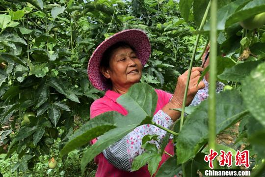 图为寻乌县留车镇飞龙村村民培育百香果。 吴鹏泉 摄