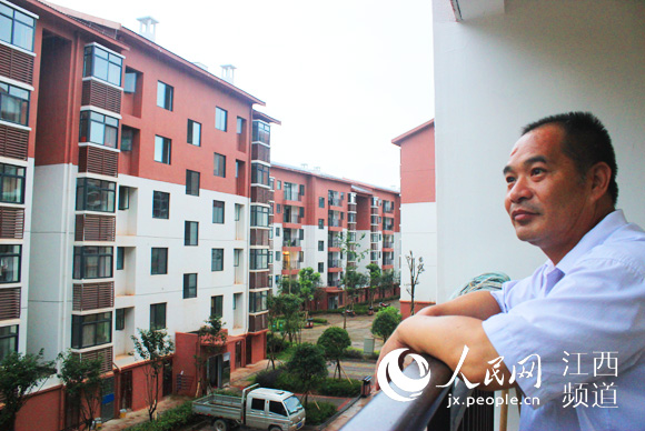 王昌财在自家阳台眺望。(艾鑫 摄)