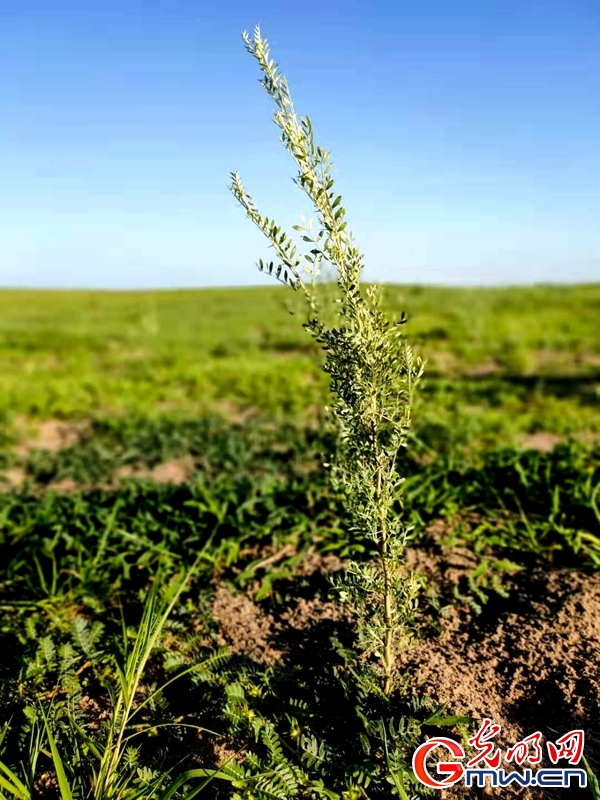 科右中旗林业和草原局副局长壮子告诉记者,原来这片地区都是流沙、土地荒芜,每次刮风都是漫天沙尘,生态环境非常糟糕,水土流失也很严重;这些‘柠条’三五年后,根系就可以把流沙固住,保持水土。