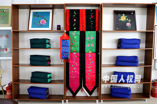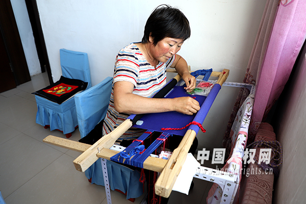 杨福林介绍说:“原来残疾人很多都赚不了钱,还需要家人照顾,觉得自己是家里的拖累。通过做刺绣,他们首先是自食其力了,第二是心理上发生了变化,不再觉得自己是家里的负担,第三是有了自己的朋友圈。大家一起交流刺绣经验,共同学习。随着刺绣水平的提高,有的人还会被称作老师,有了尊严感,这更坚定了他们追求美好生活的信心。”