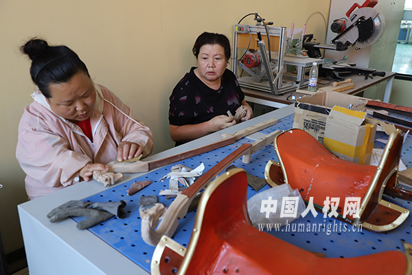 “这里的学习都是免学费的,包教包会,我上完课程后,就留在这里工作了。打磨马头琴琴头是按件计费,我一天能打磨好几个。现在,我每天工作七八个小时,风吹不着雨淋不着,收入还能跟以前给商店副食送货的时候差不多。”艳芳笑着告诉记者。