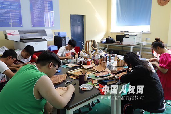 图为学生们在皮雕工作室练习制作皮雕。(摄影/贾璞玉)