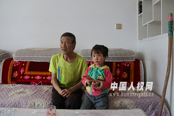 刘汉文和孙女坐在自家的沙发上接受采访。(摄影/陈可)