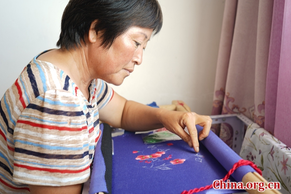 中国网8月2日讯(记者 王伊鸣)“我脱贫了,我觉得她们也可以。”王金莲一边忙活着手上的王府刺绣作品,一边自信地同记者说。