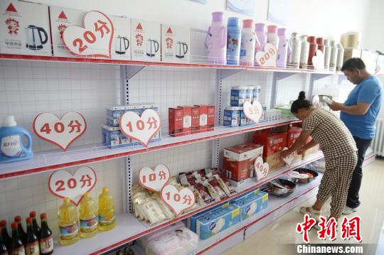 而有了这些积分,当地农牧民就可以在“文明团结超市”免费兑换日用品。
