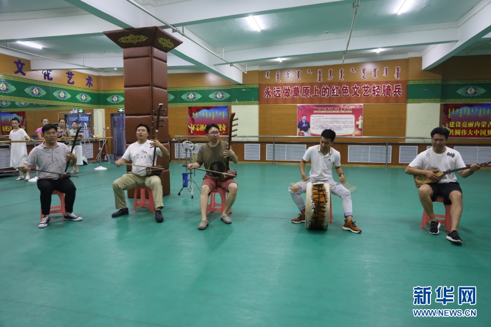 7月30日,乌力格尔组合部分成员在排练厅排练。(新华网 曹桢摄)