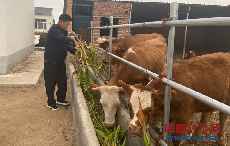 图为白吉林白乙拉在为家中养殖的牛添加饲料。经济日报-中国经济网记者 梁木摄