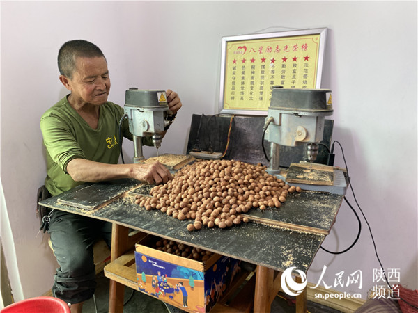 2019年,柳林村建起社区工厂,发展山核桃产业。崔振安积极报名参加山核桃工艺品编织培训学习,上工后每月有了固定收入,靠着山桃核加工这条“家门口”的致富捷径,今年7月份崔振安把家里的房子重新装修了一遍,干净明亮的客厅里,摆放着两台崔振安租来的山核桃钻孔机,闲暇时,崔振安首先想到的便是山桃核钻孔的活计。