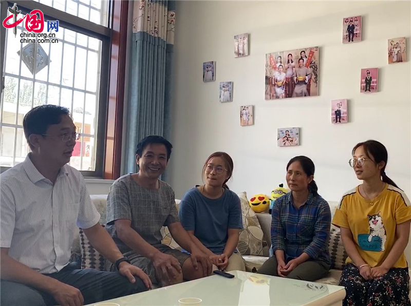 图为秦发义及家人与马咀村第一书记李冰(左一)。中国网/刘梦雅 摄