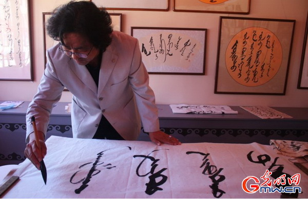道力格艳是内蒙古自治区非物质文化遗产蒙古文书法代表性传承人,他自小就跟着父亲学习蒙古文书法,从村里的对联一路写进了科右中旗第一中学的教室,还曾远赴蒙古国、韩国等地参加书法展。他说:“学习蒙古文书法最关键的就是热爱和坚持,练书法没有节假日,就跟每天吃饭一样,今天的三餐不能留到明天去吃,书法也不能拖到明天再练。”目前有100多名学生向他学习蒙古文书法,旗里许多老人偶尔也会来上书法课。“希望内蒙古地区的大学可以开设蒙古文书法班,吸引更多的年轻人来传承书法文化”,道力格艳说。