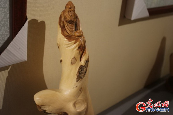 图为李玉桩制作的“达摩祖师”根雕