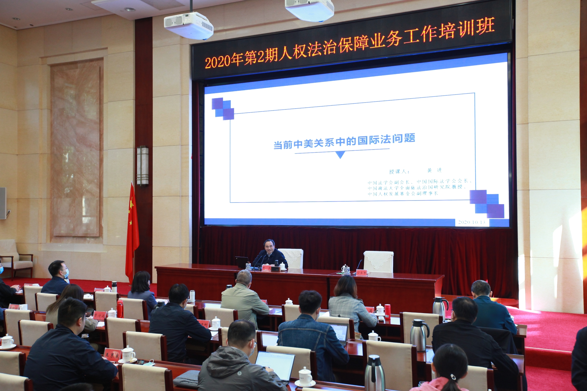 中国法学会副会长、中国人权发展基金会副理事长黄进为学员授课