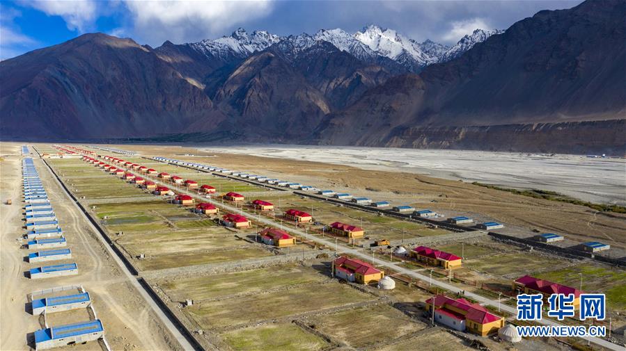 新疆喀什地区塔什库尔干塔吉克自治县达布达尔乡热斯喀木村易地扶贫搬迁后的新貌(2020年6月6日摄,无人机照片)。新华社记者 胡虎虎 摄