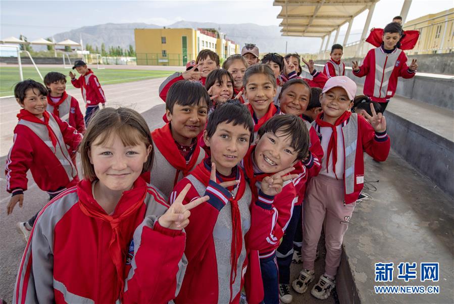 新疆塔什库尔干塔吉克自治县城乡寄宿制小学学生在课外活动时合影(2020年6月4日摄)。新华社记者 胡虎虎 摄