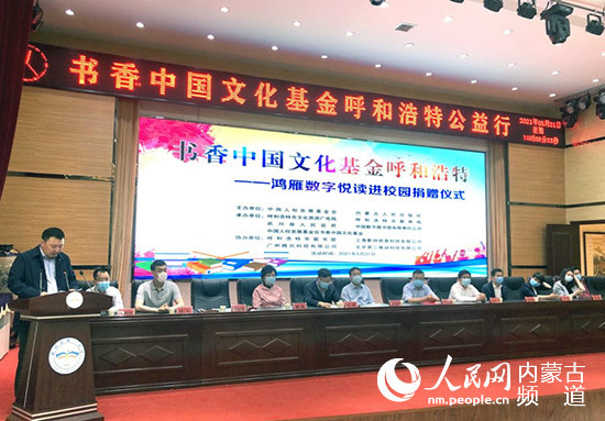 人民网呼和浩特5月31日电(张聿修)5月31日,为建设书香社会,传承中华文明,加强文化自信,建设学习型社会,“书香中国文化基金呼和浩特公益行——鸿雁数字悦读进校园”活动在呼和浩特举办。
