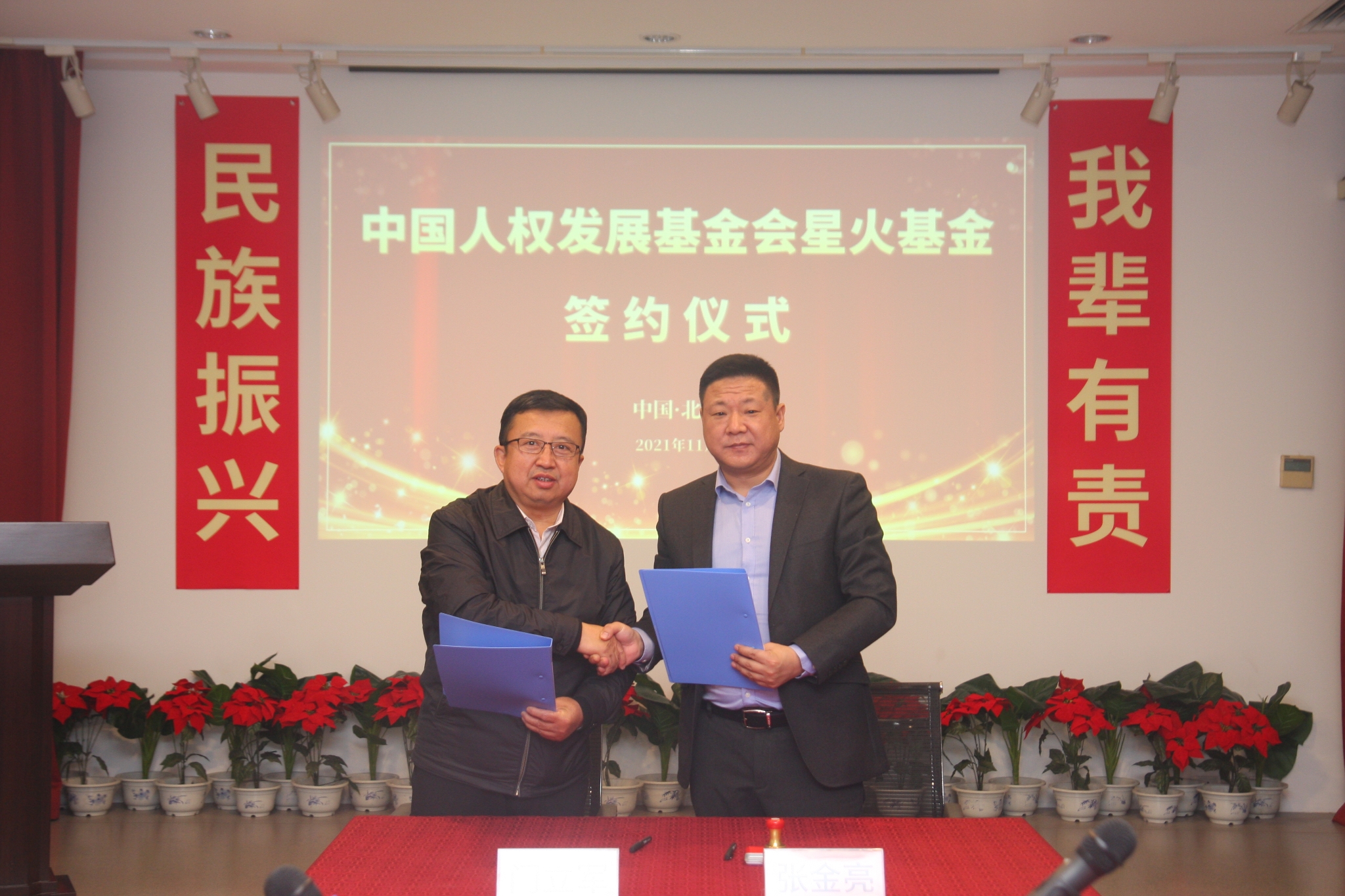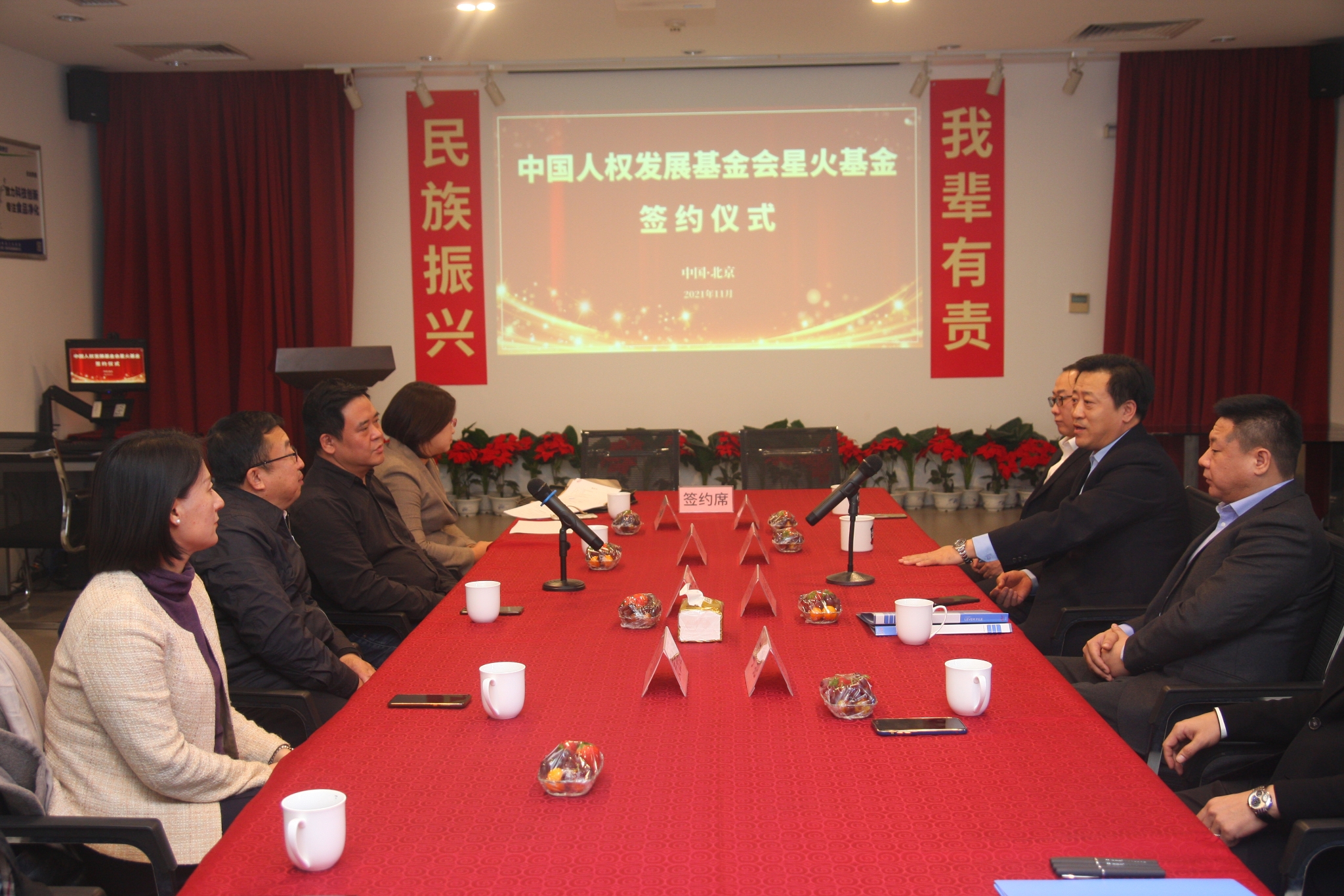 守护暖心星火,推动向善力量。2021年11月30日,由中国人权发展基金会和北京中观传媒广告有限公司共同发起成立的中国人权发展基金会星火基金在北京正式启动。中国人权发展基金会副理事长兼秘书长门立军、副秘书长秦亮、基金项目部主任贾会霞、业务主管左暄,北京中观传媒广告有限公司董事长张金亮,中食净化科技(北京)股份有限公司副总裁范友健、总经理朱俊华,北京信逸丰投资管理有限公司副总裁马驰等出席了签约仪式。