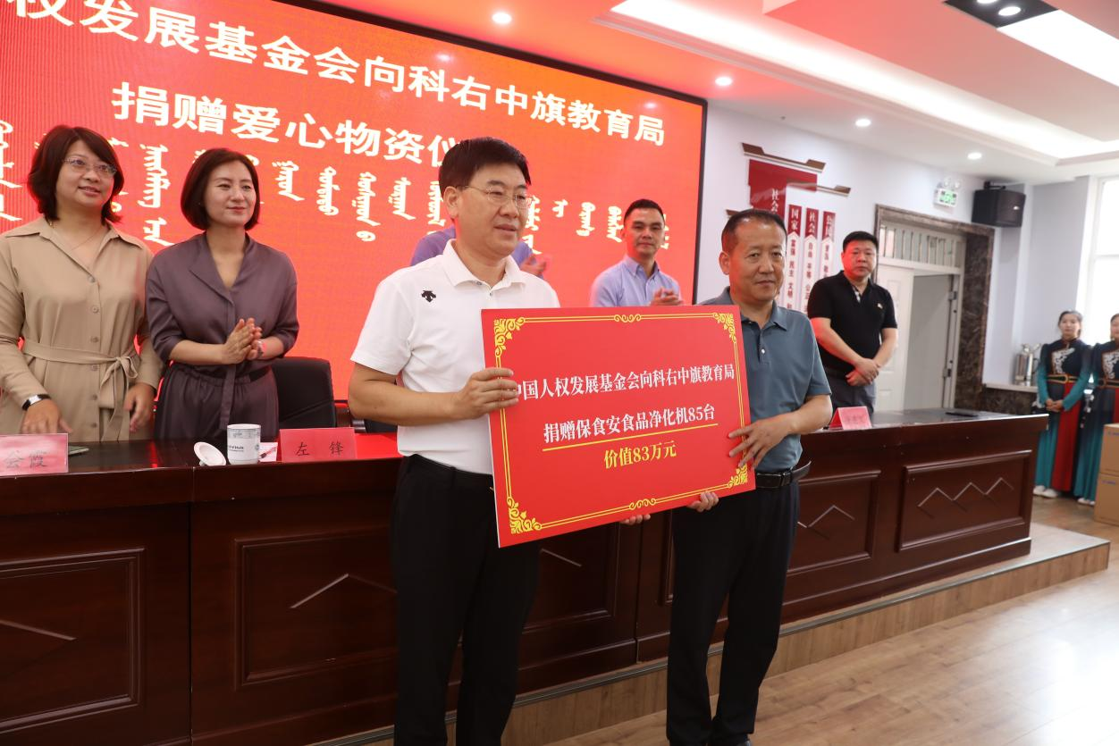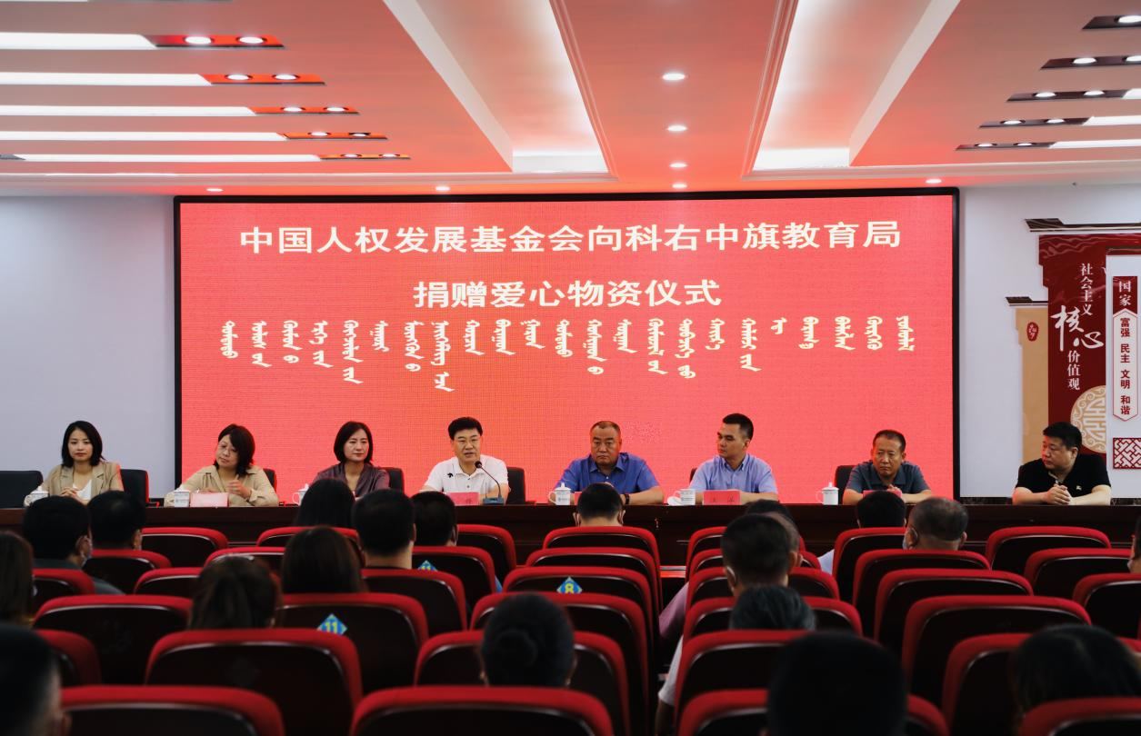 兴安盟盟委委员、副盟长禹丽芸、科右中旗旗委书记蔡宝军亲切会见左锋一行,对中宣部、中国人权发展基金会长期以来关心、支持科右中旗发展表示衷心感谢。旗委副书记、政法委书记巴特尔在捐赠仪式上说,中国人权发展基金会情系基层,用实际行动为科右中旗教育事业发展献爱心、办实事,此次捐赠活动给科右中旗教育事业带来的不仅是工作上的支持,物质上的帮助,更重要的是精神上的鼓舞,以实际行动在全社会营造了尊师重教的良好风尚,唤起了更多人关注基层教育的发展,关爱广大学生的成长。