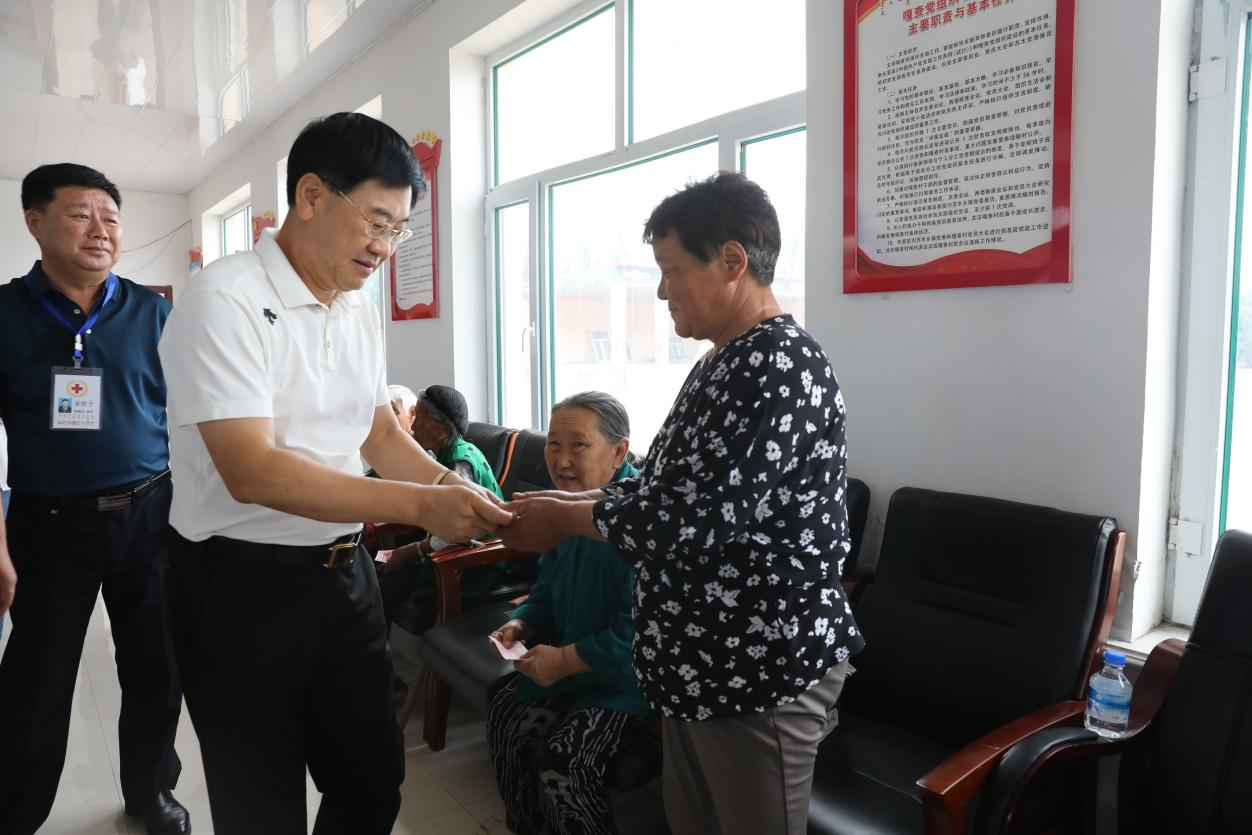 捐赠仪式后,左锋一行在科右中旗代钦塔拉苏木与孤寡老人代表进行座谈,并向额木庭高勒苏木、吐列毛杜镇、巴仁哲里木镇、哈日诺尔苏木、代钦塔拉苏木、杜尔基镇等6个苏木(镇)的240名孤寡老人科右中旗孤寡老人捐助爱心款。