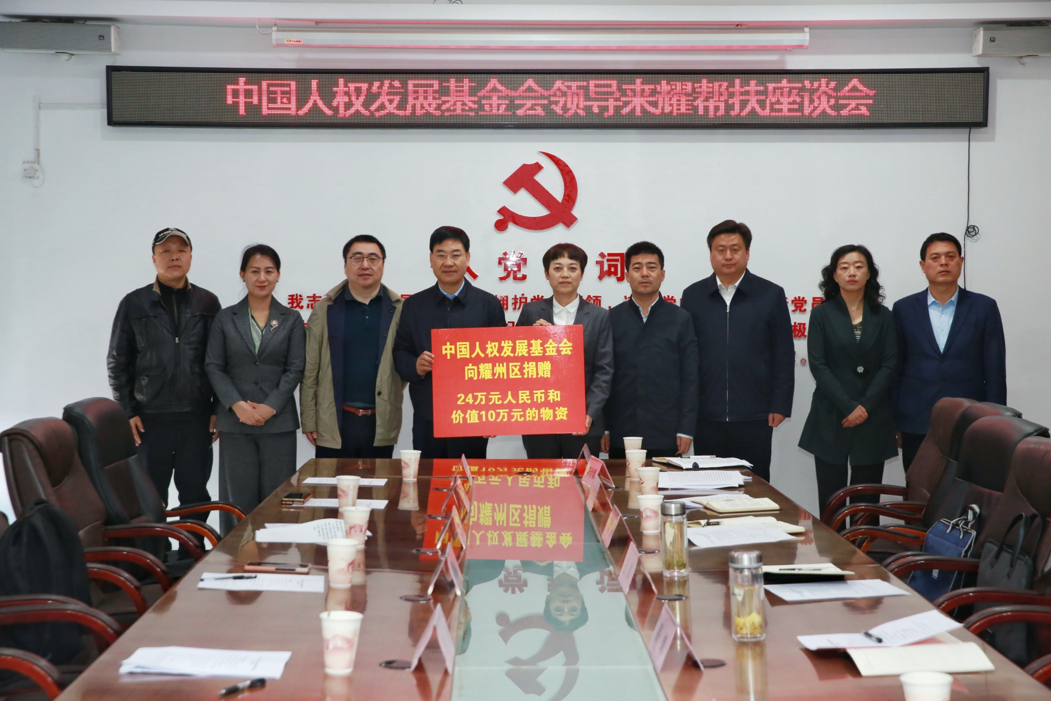 4月14日,中央宣传部人权发展和交流中心主任、中国人权发展基金会副理事长兼秘书长左锋一行来耀开展公益活动。区委副书记、区长高岗,区委副书记孙进军参加相关活动。