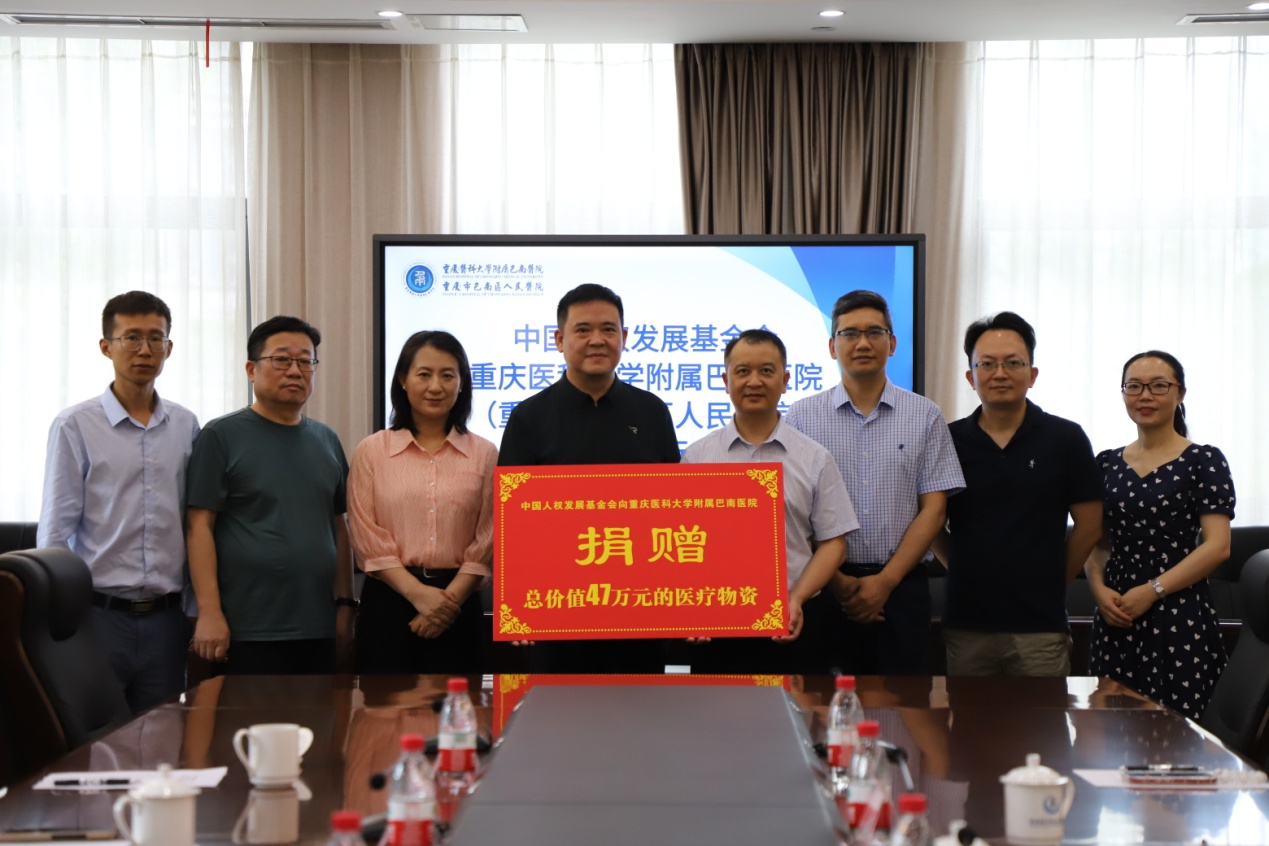 7月29日,中国人权发展基金会赴重庆开展捐赠活动,助力新时代文明实践基金和促进公民健康公益基金向重庆市巴南区人民医院捐赠总价值47万元的物资。