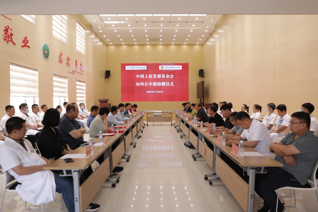 王海英在致辞中说,中国人权发展基金会多年来用实际行动献爱心、办实事,倾力帮扶科右中旗各项事业,这不仅是工作上的支持,物质上的帮助,更重要的是精神上的鼓舞。此次,中国人权发展基金会为科右中旗捐赠价值140余万元的物资,充分体现中国人权发展基金会积极响应国家乡村振兴战略号召、关心科右中旗医疗卫生事业的责任与担当??朴抑衅旖芎谩⒂煤?、珍惜好这来之不易的物资,回馈中国人权发展基金会对科右中旗的支持。