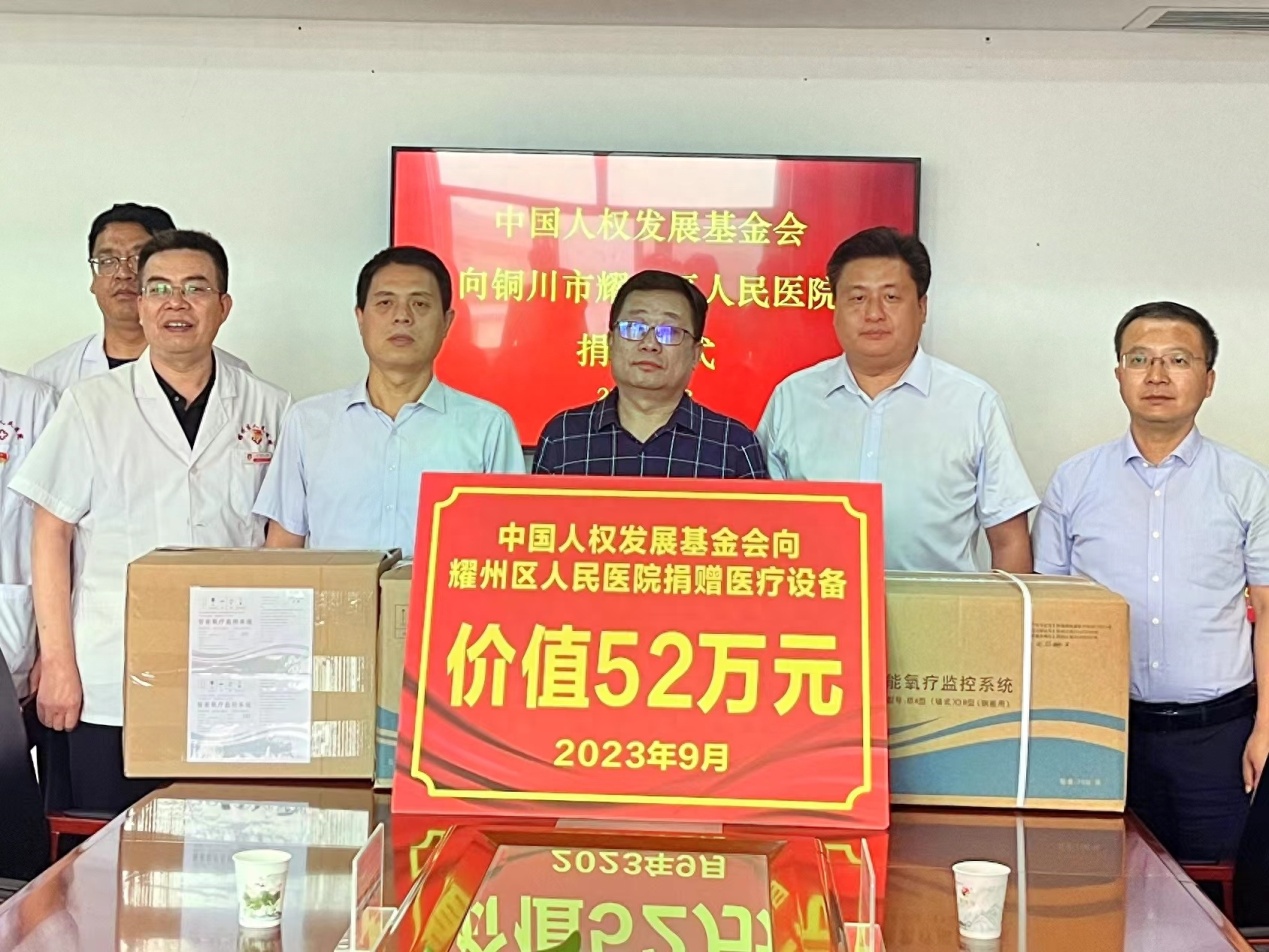 9月18日,中国人权发展基金会向铜川市耀州区人民医院捐赠医疗设备仪式在该院举行。中国人权发展基金会新时代文明实践基金执行主任郑焱出席捐赠仪式,此次捐赠活动共捐赠了价值52万元的智能氧疗监控和智能护理监视系统等医疗设备。