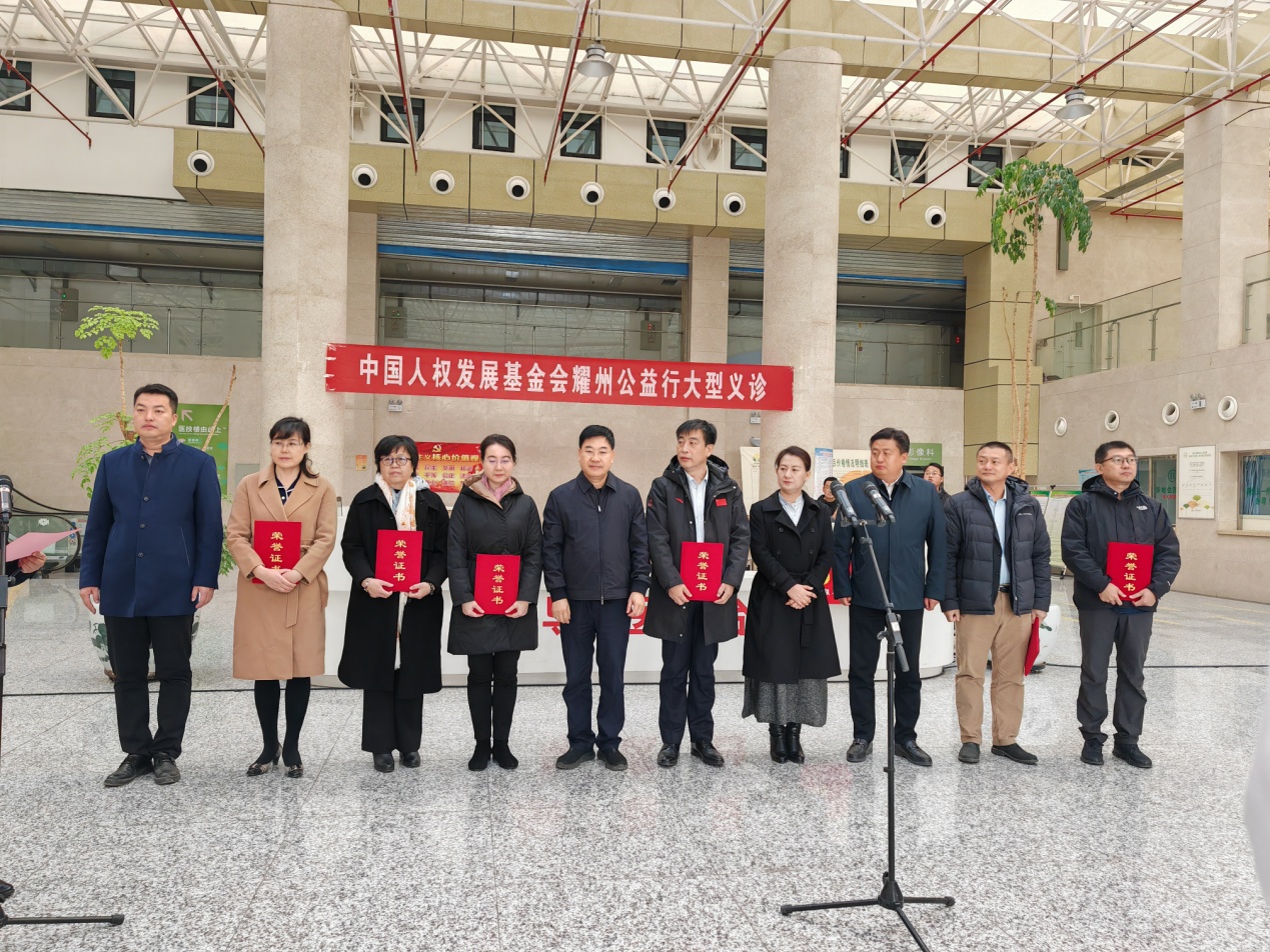 11月15至16日,中国人权发展基金会副理事长兼秘书长左锋、基金项目部主任贾会霞、助力新时代文明实践基金执行主任郑焱等赴陕西耀州开展医疗帮扶活动,组织北京天坛医院为当地搭建远程诊疗系统,邀请北京医疗专家现场义诊,启动耀州区老年人认知障碍筛查项目等。