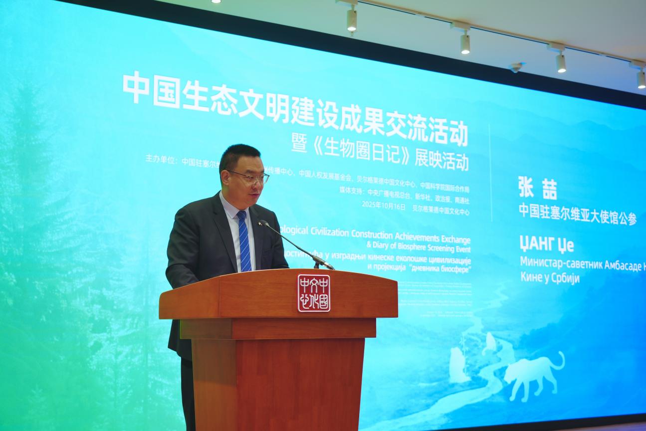 10月16日,由中国驻塞尔维亚大使馆、五洲传播中心、中国人权发展基金会、贝尔格莱德中国文化中心、中国科学院国际合作局联合主办的“中国生态文明建设成果交流活动暨《生物圈日记》展映活动”在贝尔格莱德中国文化中心成功举办。
